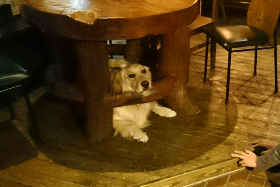 飼っている犬が店内を歩いく事があり、犬を通じてお客さん同士の会話が広がります。